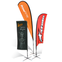 You don’t have to put your custom flags away once winter comes creeping around. These flexible promotional items work in almost every condition. They can easily be secured with ground screws in the sand or snow, so don’t let that blizzard ruin your plans for custom printed flags. The snow can actually work in your favor: the flags are made of premium polyester and use dye-sublimated technique so their colors will pop, regardless of the weather.