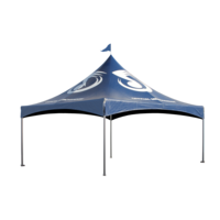 The Marquee is a sturdy and strong frame tent that gives you a reliable home base during the winter. It doesn’t have as many poles as other frame tents, so you only have to spend 20 minutes setting it up. The less time you have to spend unprotected in the winter, the better. This custom printed frame tent also features a heavy duty frame, a strong footplate with a ground spike designed to withstand high winds, rust-free fittings and ropes and ratchets for anchoring everything down. The vinyl material can be printed with your company’s colors and logo, or other marketing messages.