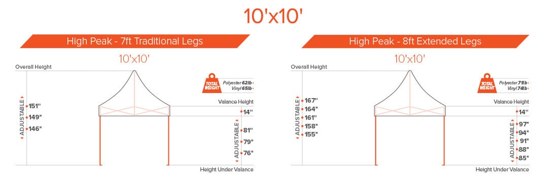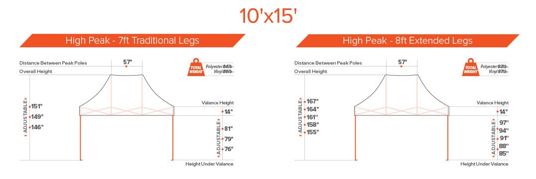 8ft extended legs to that give your tent the extra height.