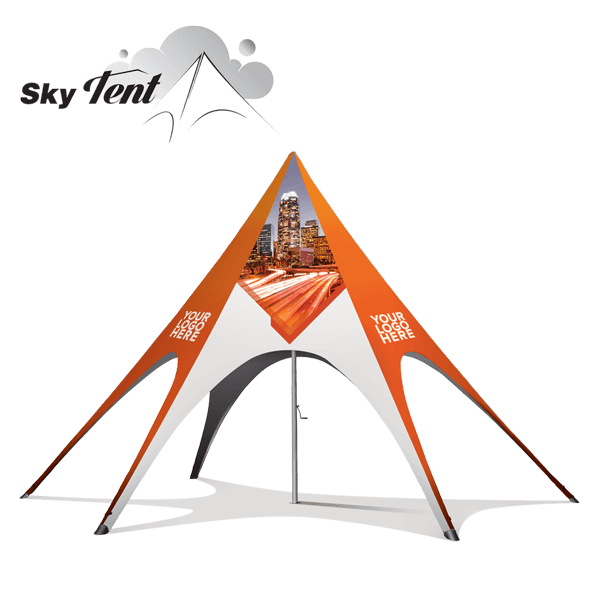 We developed this stylish and classy custom star canopy tent to ensure that you will always be noticed at any event. The star shape design is ideal for attracting traffic towards your location at any outdoor promotional event.