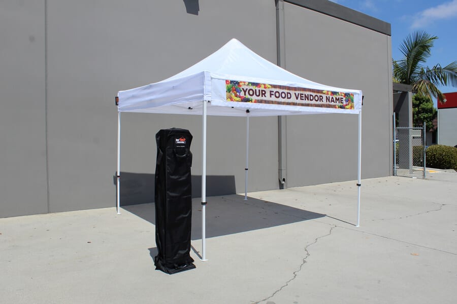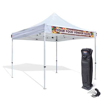 The InsTenT Vendor Kit is an ideal portable shop for your art & craft fairs, food festivals, farmers market and more! It is the only canopy in the market to offer a banner sleeve located on the front valance to give you the option to insert your own custom branded banner and set your business apart from the competition. A roller bag and a stake kit are included.