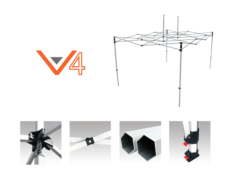 Our custom canopy frames are made of commercial grade materials that are durable and made to last from one event to the next. They are designed for professional use at any event and are easy to setup with no tools required. The pop up deployment system makes it quick and simple to set up your custom tent booth in no time.
