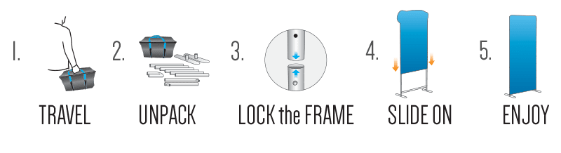 Our Quick-N-Fit Tension Walls were not only designed to create a striking presentation, but with convenience in mind. Fast and easy to set up, it can be quickly assembled without having to hire help. Composed of durable aluminum tubes that connects together and lock in place with a push button, this tubing technology allows for fast set up and take down. The high resolution graphic sleeves provide a perfect brand presentation to make an impact at any show.