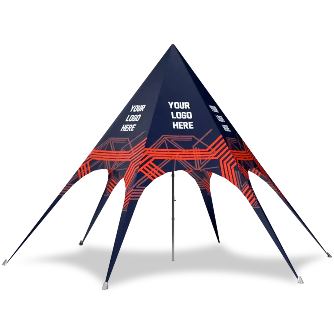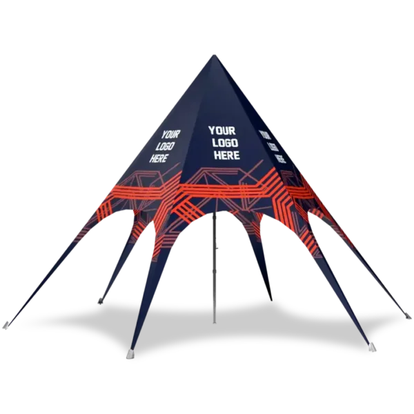 This stylish and classy custom star canopy tent comes with a digitally printed 600 Denier polyester top that is fire retardant and water resistant. Our printing capabilities are endless and we can print any design or logo.