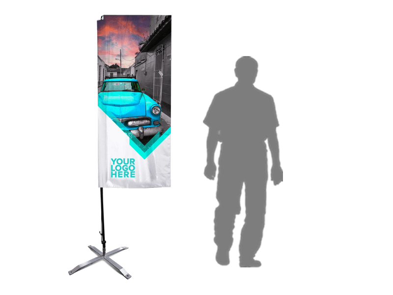 Our Banner flag is part of our custom printed flags collection that is a simple and affordable solution for effective branding. This rectangle shaped flag is not only simple to set up without tools, but also light & conveniently transportable. The poles are made from premium fiberglass that are much more flexible and wind resistant than the aluminum poles found in the market. Strong and flexible, your flag poles will last longer. We use only the top quality polyester and high resolution printing techniques so that logos and designs visibly stand out from any location. Fully printed it can be customized with any design, color or logo. Our meticulous stitching technique gives your flag a seamless sewing presentation. To easily store and carry your flag a free flag carrying bag is included.