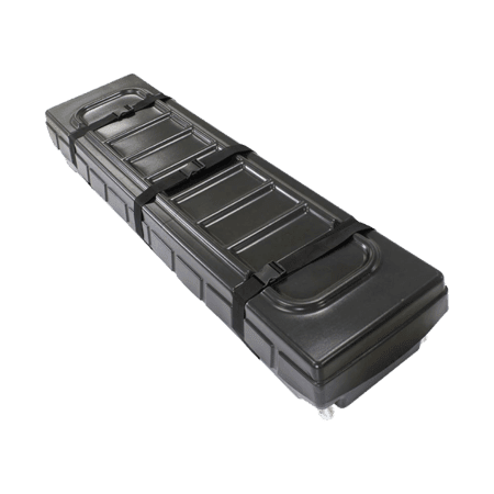 Durable, molded plastic carry case with wheels that is shaped and developed to transport a 10’ x 10’ or a 10′ x 15′ canopy smoothly. Featuring wrap around luggage straps with clip buckle ends secured in harness slots and a soft handle for safe and effortless transportation. Its rectangle shape and inset wheels make it easy to stack or pack.