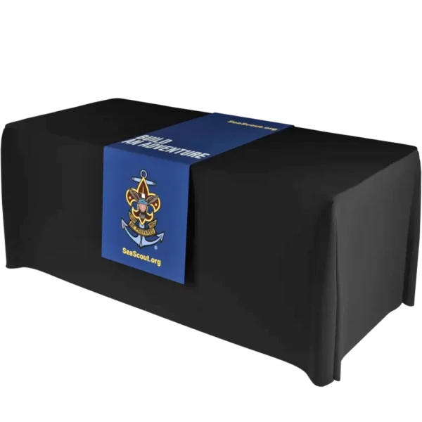 This custom table runner is an affordable solution for branding and showcasing your brand. It is ideal for trade shows, sporting competitions, promotional events, school events, fundraisers table and many more.